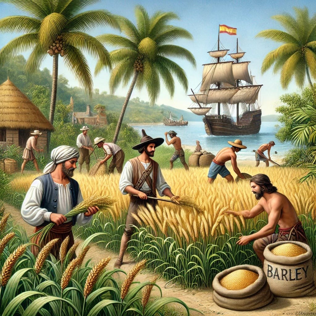 Utilizada principalmente para la producción de cerveza y alimento animal, la cebada fue introducida en regiones de América donde el clima era favorable. El cronista Inca Garcilaso de la Vega relata en sus Comentarios Reales que María de Escobar también fue responsable de la introducción de este grano en el Perú, comparándola con Ceres, la diosa romana de la agricultura.