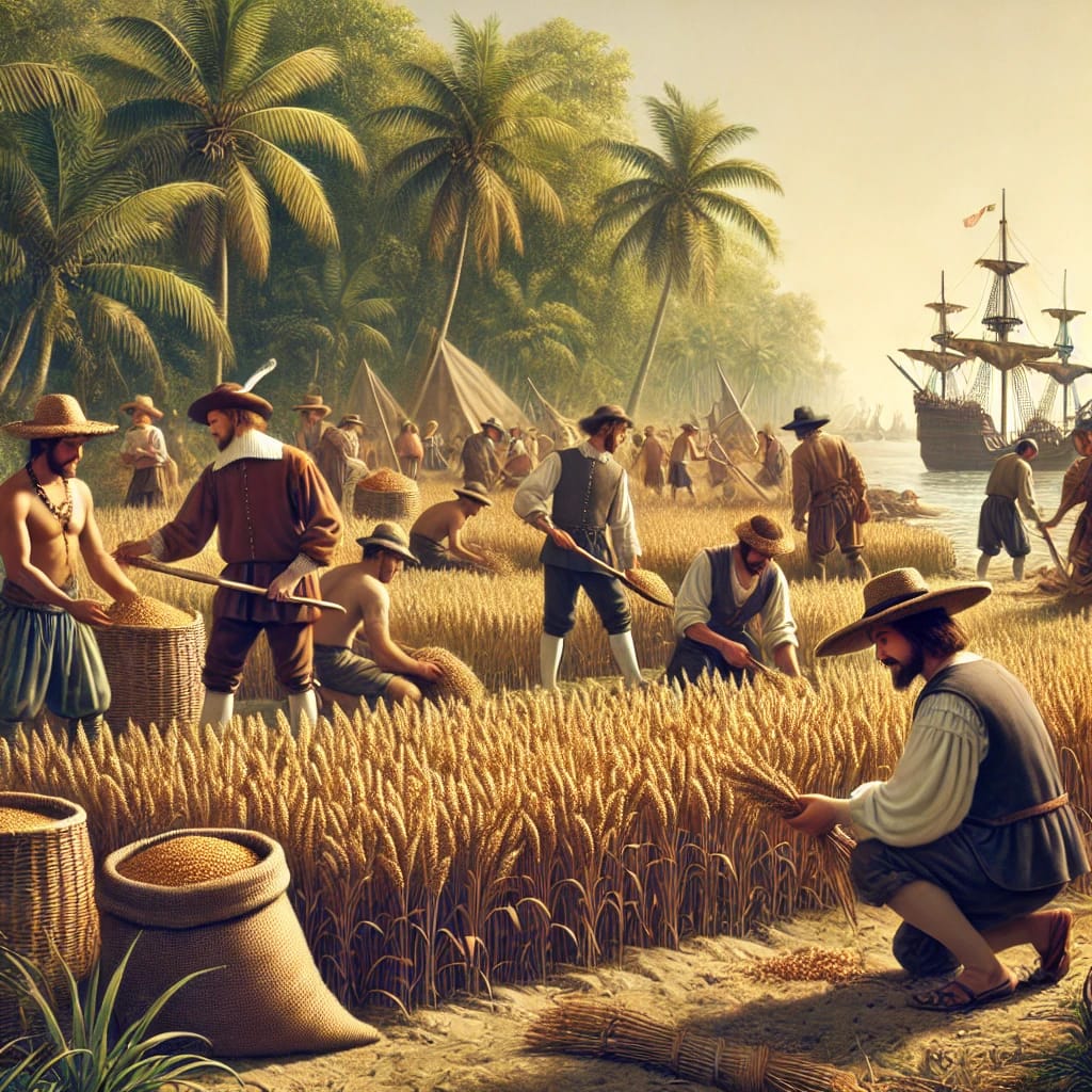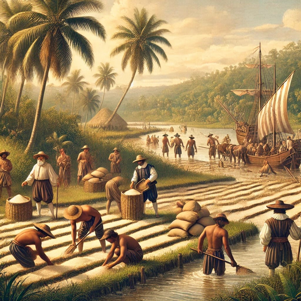 El arroz era un alimento importante en la dieta española del siglo XVI, aunque tardó en establecerse en América. A pesar de haber sido introducido por Colón en su segundo viaje, no fue hasta 1580 cuando comenzó a cultivarse exitosamente en Colombia. En 1694, se plantó arroz en Carolina del Sur, un cultivo que prosperaría en esta región de los Estados Unidos.