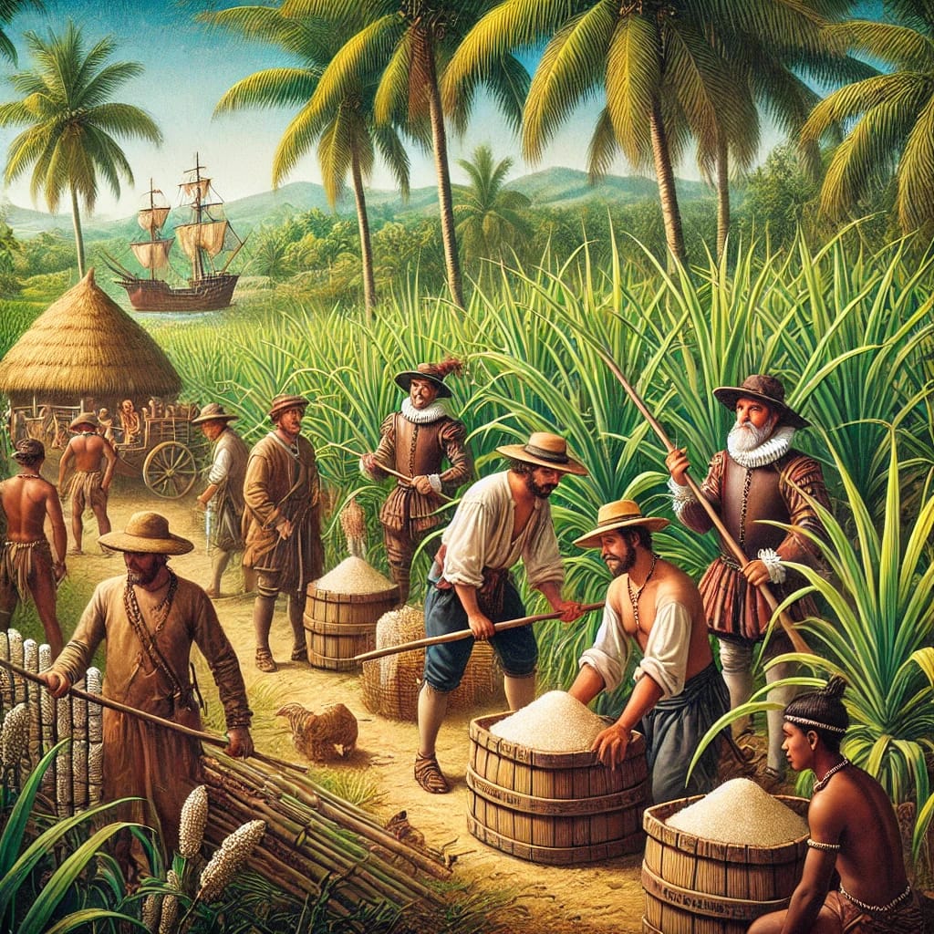 La caña de azúcar, originaria del sudeste asiático, llegó a América a través de los españoles, quienes la introdujeron en el Caribe y América Central. Este cultivo se convirtió rápidamente en uno de los motores económicos de las colonias, transformando las economías locales.