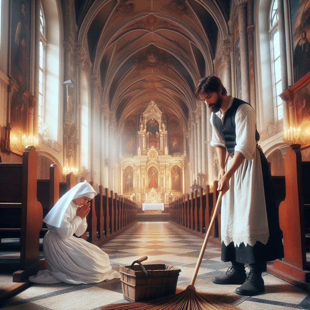 Aun siendo religiosas, tendrían algún deseo y debido a su voto de castidad, estarían necesitadas de roce masculino. Sería un suplicio que no me imagino, tendrían la empanada pidiendo relleno de carne todo el día las pobres y claro, esto las llevaría de nuevo a rezar arrodilladas dando pie a un nuevo oficio eclesiástico, el Mopero, que cuál limpiador de la NBA se dedicaba a secar el suelo tras el rezo de sus pobres hermanas.